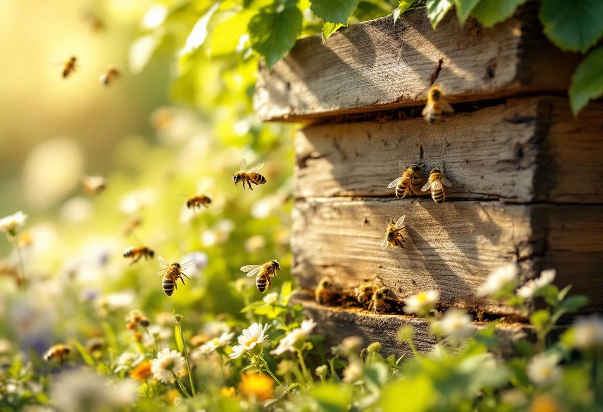 L’installation d’une ruche traditionnelle s’accompagne de pratiques douces : visites espacées, gestion respectueuse et choix d’emplacements riches en fleurs variées. Ces habitudes stimulent la biodiversité locale et renforcent la santé du couvain.